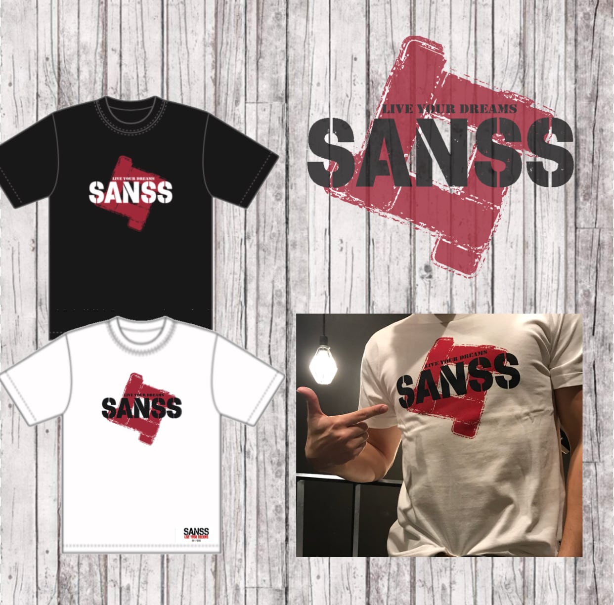 人生に夢を持とうをコンセプトに掲げる「SANSS」は、日本や世界中の子ども達にグローブを売上の一部より寄付します。ぜひTシャツをご購入いただきSANSS ファミリーに加わっていただけると幸いです。